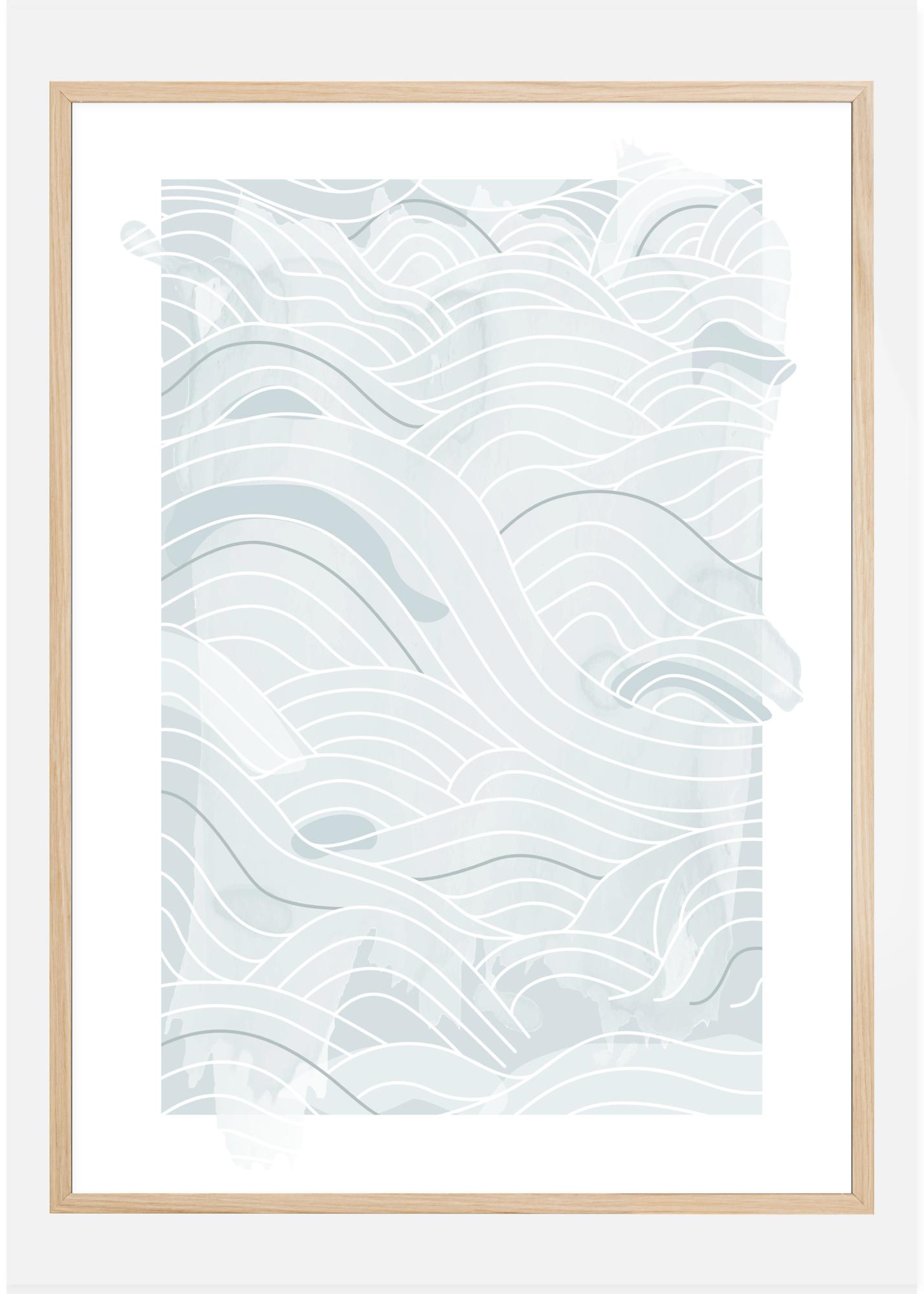 Een oceaan poster met zachtblauwe abstracte lijnen en golven op een witte achtergrond. Verschillende tinten blauw en verschillende lijndiktes maken samen deze golvende golven over de poster. Verdwaal in gedachten en laat je meeslepen door dit zachte oceaan ontwerp.