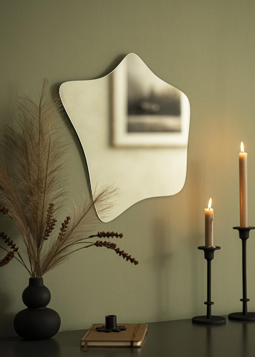 Modern minimalisme en een op de natuur geïnspireerde vorm - deze muurspiegel geeft je het beste van twee werelden! De unieke vorm doet denken aan bloeiende anemonen, terwijl het frameloze ontwerp en het 4 mm dunne spiegelglas de spiegel een elegante en moderne uitstraling geven.