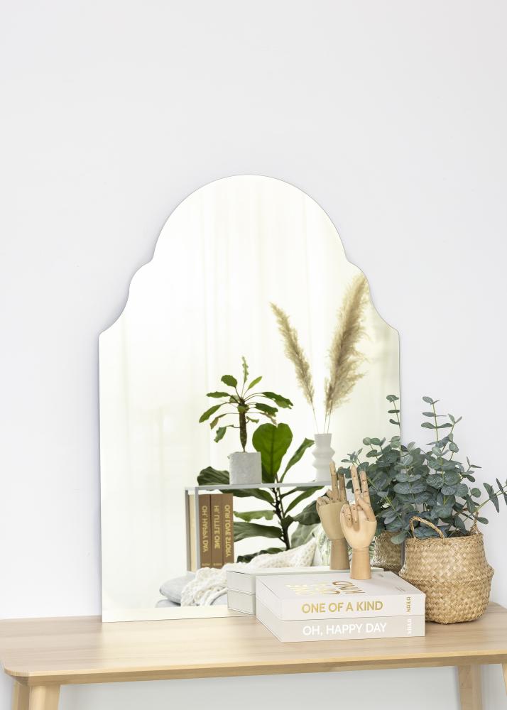 Laat je inspireren door Oriëntaalse invloeden met deze prachtige spiegel van KAILA. De spiegel heeft een klassieke uitvoering zonder lijst, maar met een vorm die een persoonlijk tintje toevoegt aan de kamer. Hij is perfect voor in de woonkamer, maar ook voor in de hal of slaapkamer. Dankzij de praktische wandbevestiging kun je de spiegel makkelijk ophangen waar je wil. De wandspiegel heeft een afmeting van 70x100 cm.
