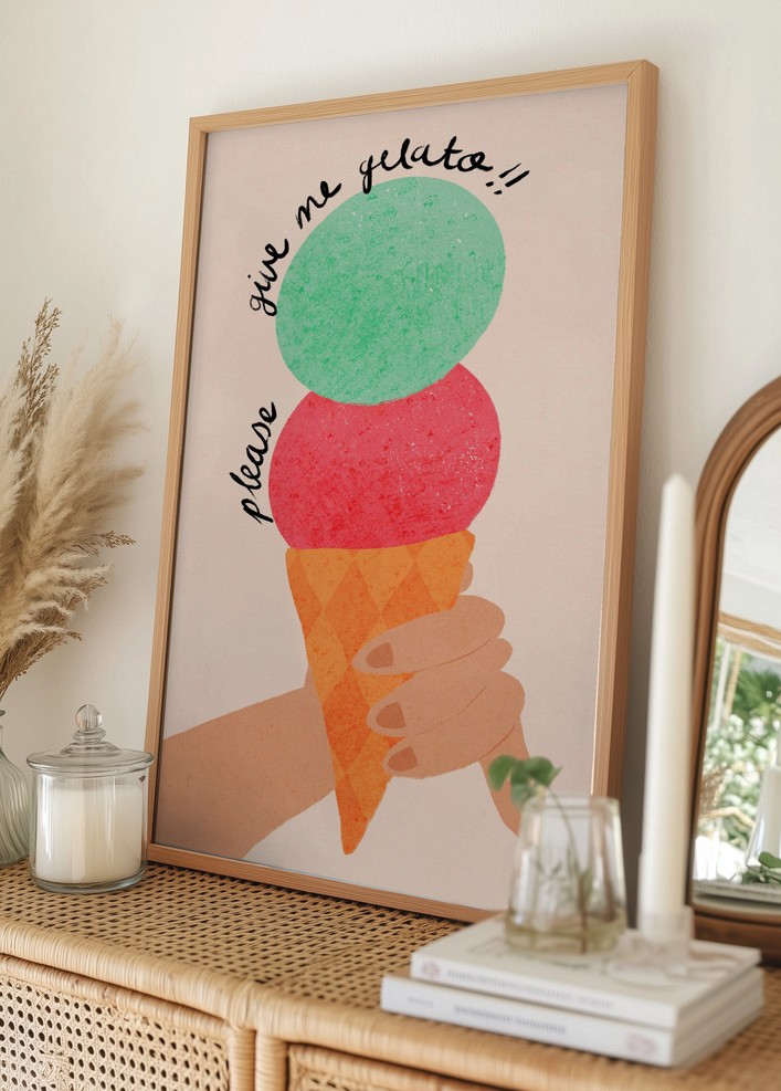 Please Give Me Gelato Ice Cream Typography Strawberry and Mint Poster