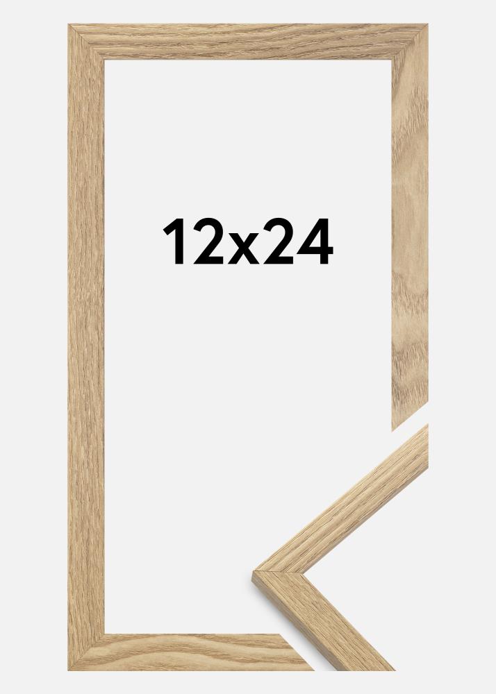 De lijst is gemaakt van MDF-materiaal met een fineer van eikenhout en heeft een dun profiel van 14 mm. Er is voldoende ruimte om je afbeeldingen aan te vullen met een luxe passe-partout, dankzij de 12 mm binnendiepte (sponningdiepte) van de lijst.