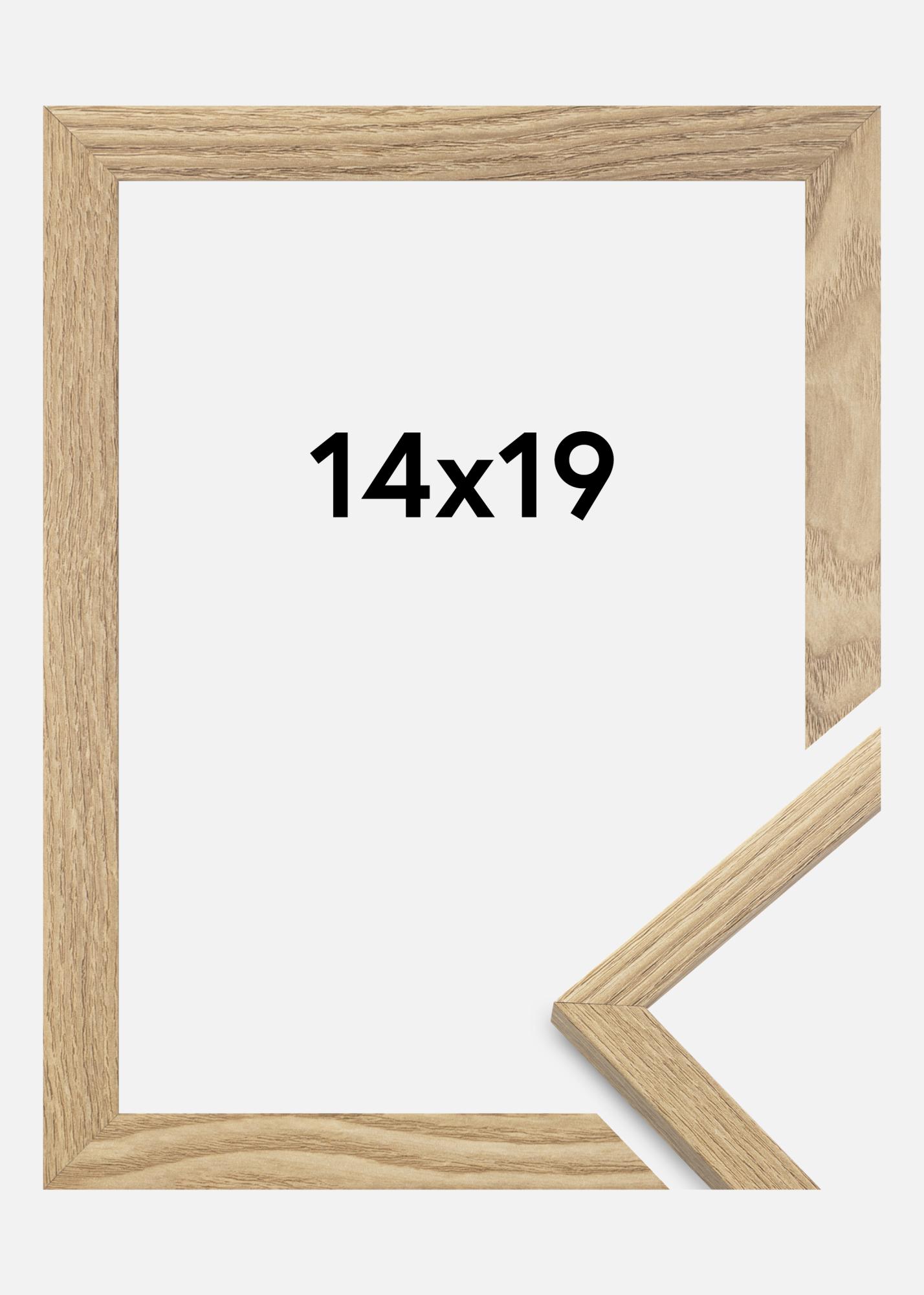 De lijst is gemaakt van MDF-materiaal met een fineer van eikenhout en heeft een dun profiel van 14 mm. Er is voldoende ruimte om je afbeeldingen aan te vullen met een luxe passe-partout, dankzij de 12 mm binnendiepte (sponningdiepte) van de lijst.