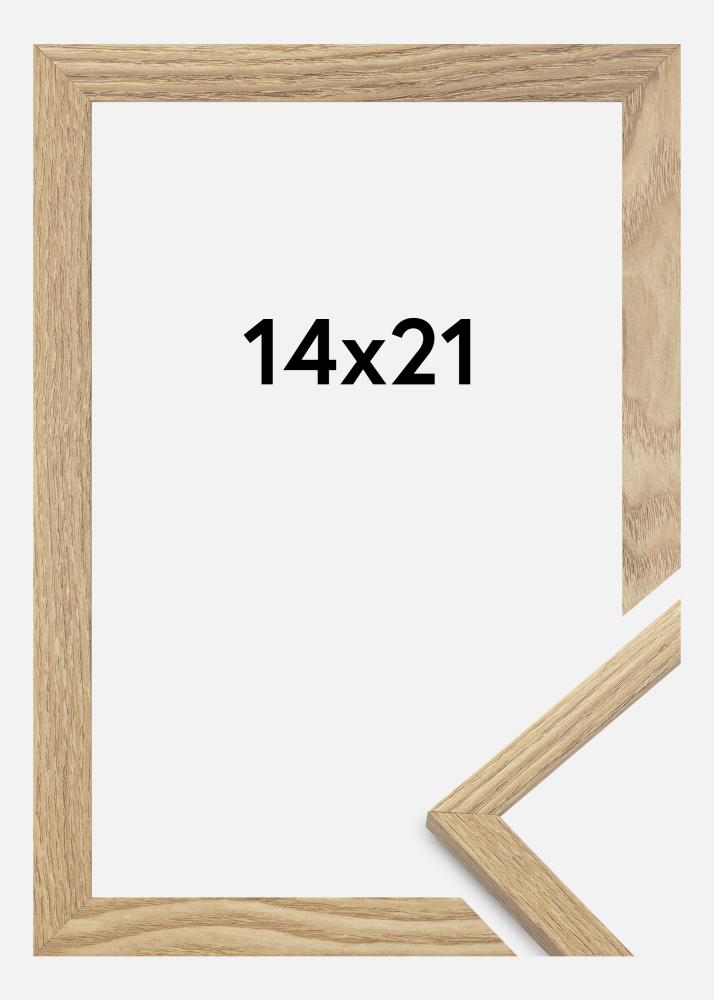 De lijst is gemaakt van MDF-materiaal met een fineer van eikenhout en heeft een dun profiel van 14 mm. Er is voldoende ruimte om je afbeeldingen aan te vullen met een luxe passe-partout, dankzij de 12 mm binnendiepte (sponningdiepte) van de lijst.